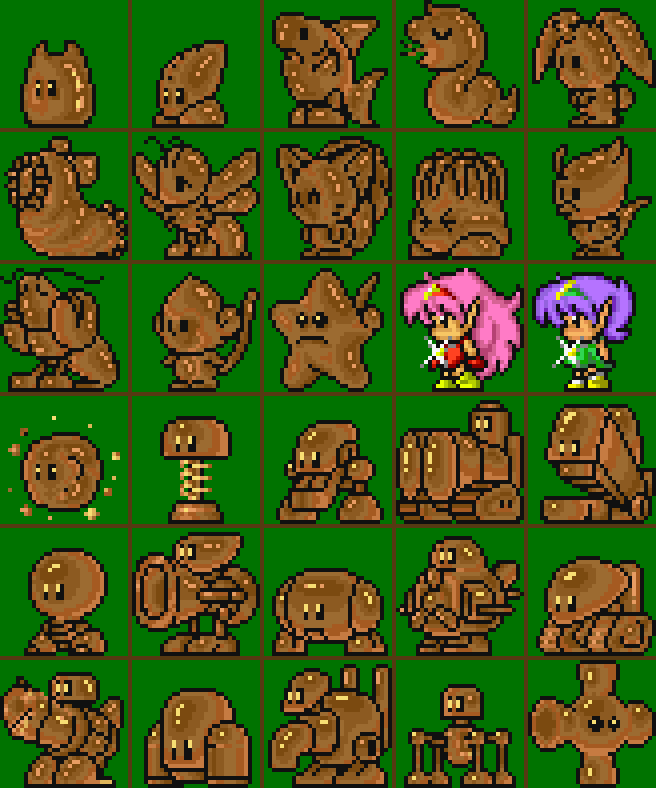 There is also a (likely) unused frame for each of the enemies where they are all brown and distressed, possibly the effect of some kind of explosion.